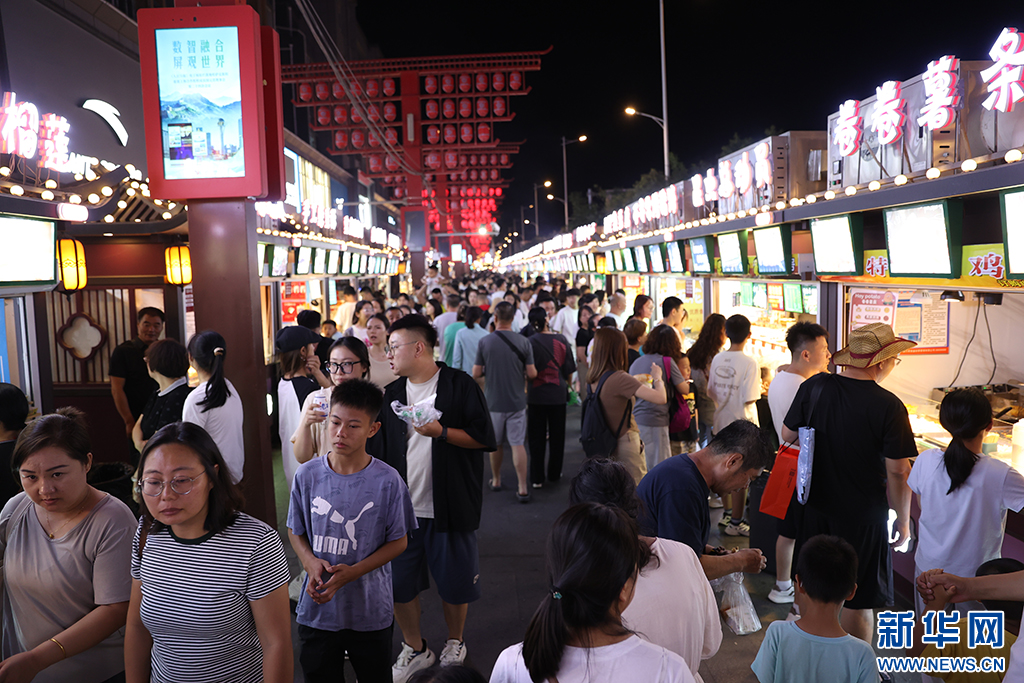 當下正值暑期旺季,立秋后的寧夏夜晚涼爽怡人,在銀川懷遠夜市,來自全國各地的游客和本地市民絡繹不絕,夜市里“煙火氣”升騰,銀川“夜經濟”在火熱中不斷綻放。新華網 張潔龍 攝