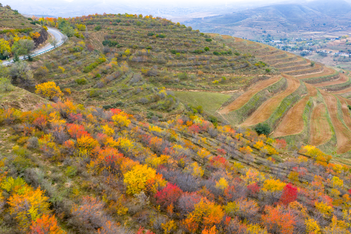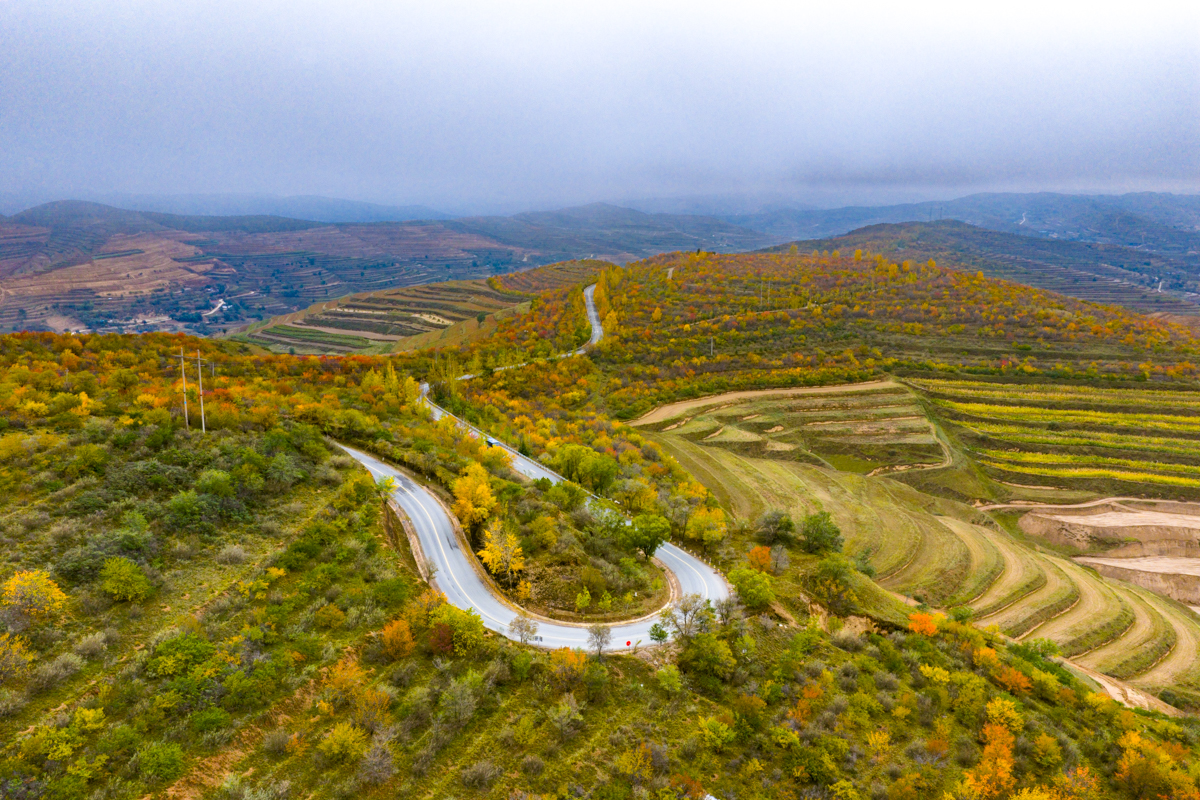 深秋時(shí)節(jié),寧夏西吉縣興平梁宛如一幅絢麗的畫(huà)卷。蜿蜒的公路盤(pán)旋在五彩斑斕的山坡間,樹(shù)木像是被打翻的調(diào)色盤(pán),染上了金黃、橙紅等色彩。遠(yuǎn)處,層層梯田與山巒相依,湖水如鏡點(diǎn)綴其間。云霧繚繞下,這里靜謐而壯美,每一處風(fēng)景都訴說(shuō)著秋日的浪漫與詩(shī)意,令人心醉神迷。 寧夏新聞網(wǎng)記者 祁瀛濤 攝