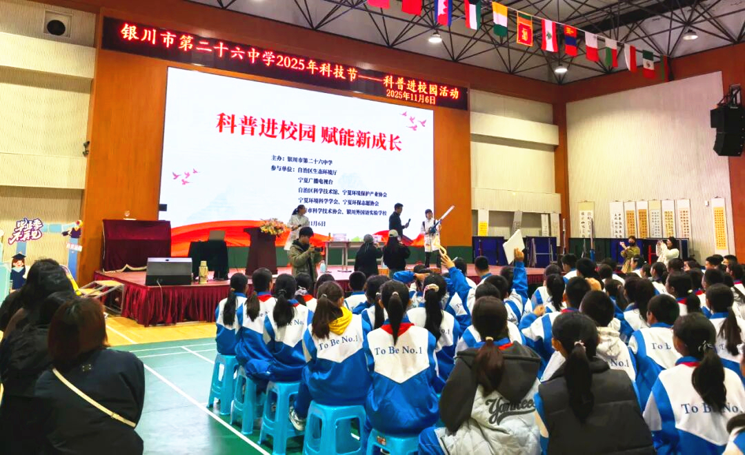寧夏新聞網(wǎng)訊(記者 楊兆蓮)為激發(fā)學生探究熱情、培養(yǎng)環(huán)保意識,寧夏生態(tài)環(huán)境廳日前聯(lián)合寧夏旅游廣播、寧夏科技館等多部門打造的生態(tài)科普活動走進銀川市第二十六中學,以沉浸式的體驗,為學生們開啟了一段奇妙的綠色科技之旅。