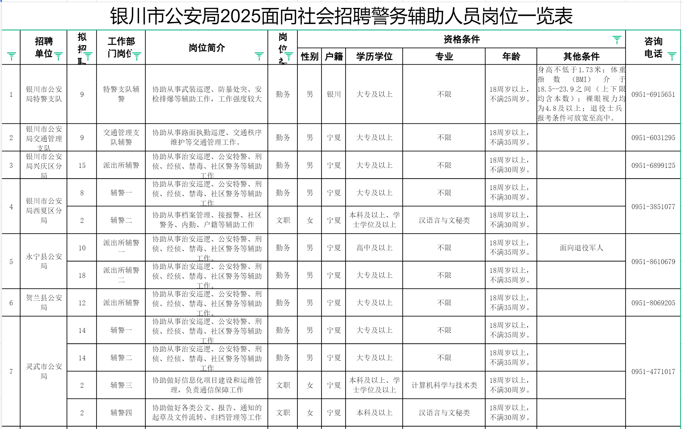 寧夏新聞網(wǎng)訊(記者 胡俊)為進(jìn)一步加強(qiáng)基層基礎(chǔ)工作,有效解決公安機(jī)關(guān)警力緊缺問題,11月13日,銀川市公安局發(fā)布公告,將組織實(shí)施2025年警務(wù)輔助人員招聘工作,面向社會(huì)公開招聘輔警153名。