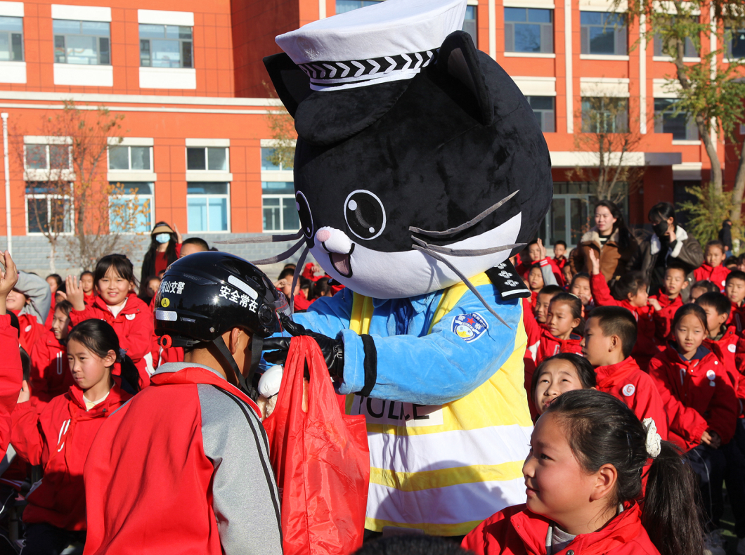 活動中,交警與小學生開展交通安全知識問答互動和認識車輛盲區交通安全小游戲,贈送安全頭盔,并表演汽車壓頭盔、木棒砸頭盔和警犬訓練科目,受到全校1500余名師生的熱烈歡迎。(石嘴山市公安局交通管理局 張曉龍)