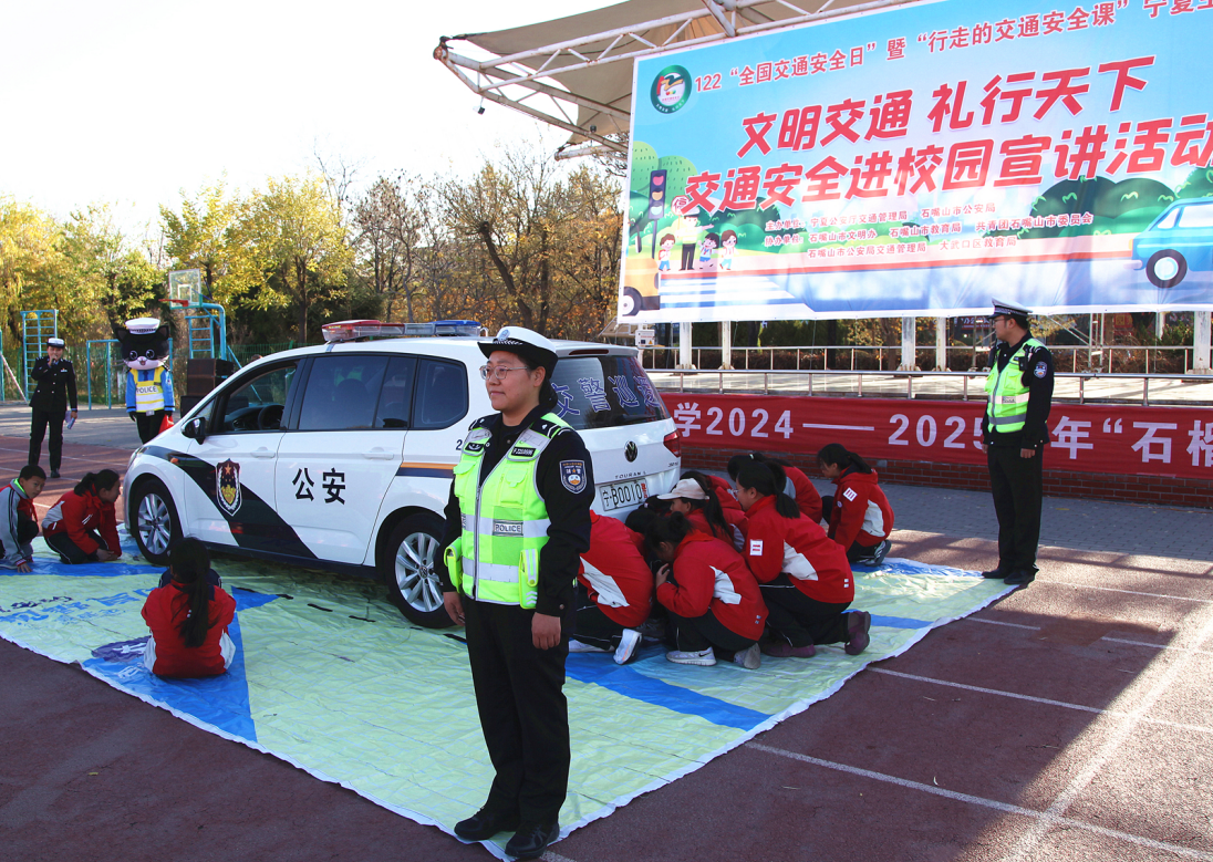 11月14日,石嘴山市公安局交通管理局民警在石嘴山市第十六小學舉辦122“全國交通安全日”系列活動之“行走的交通安全課”寧夏主題活動。