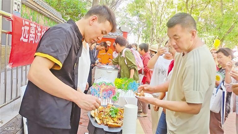 銀川市興慶區(qū)麗景街街道景墨社區(qū),美食文化節(jié)吸引各族居民“打卡”。